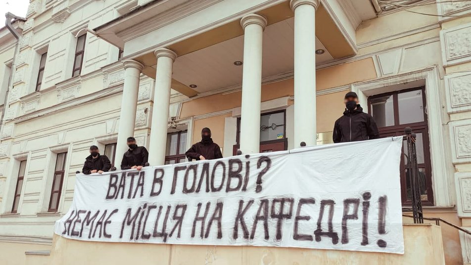 Як повідомляє "Суспільне", в середу, 14 квітня, біля будівлі навчального закладу активісти провели пікет з вимогою до керівництва академії звільнити викладачку з такими поглядами.