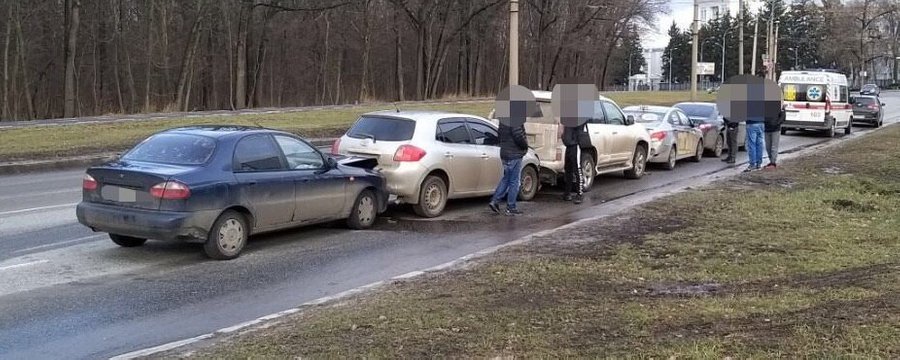 На Білгородському шосе в місті Харкові в понеділок, 3 лютого, зіткнулися відразу 5 легкових автомобілів, які рухалися в попутному напрямку.