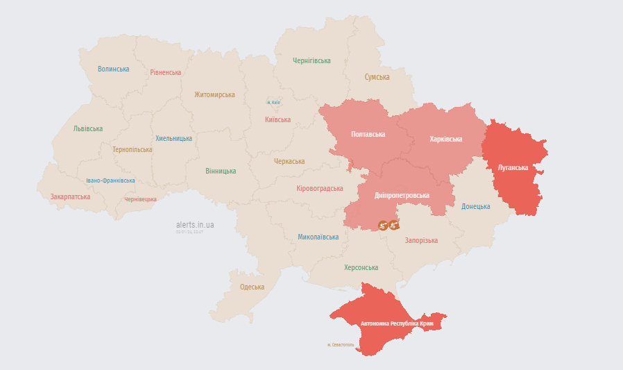 Окрім Харківської області, як інформують Повітряні Сили, є загроза для Полтавської та Дніпропетровської областей.