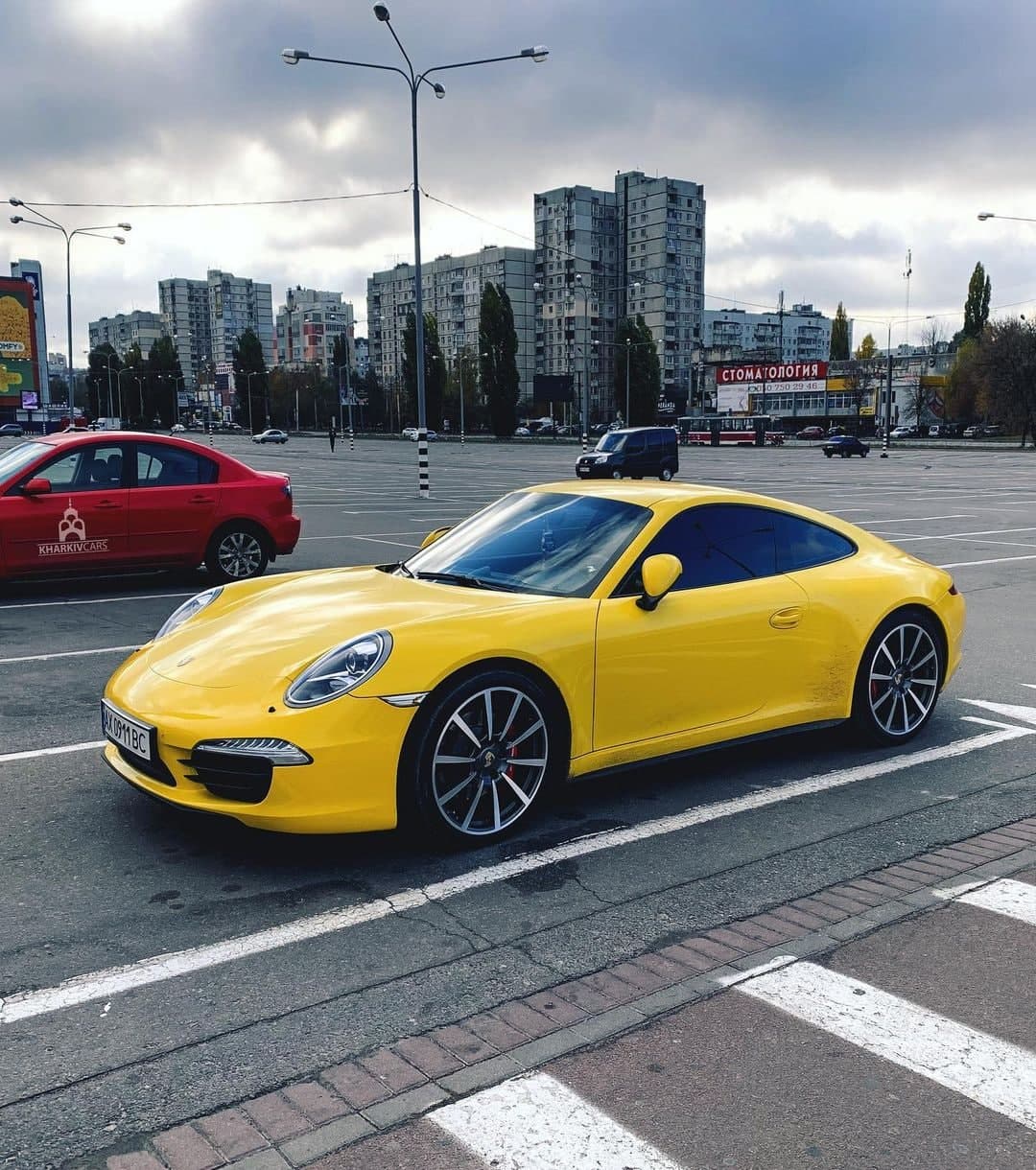 На дорогах Харкова перехожі помітили розкішний автомобіль Porsche 911 в яскраво-жовтому кольорі.