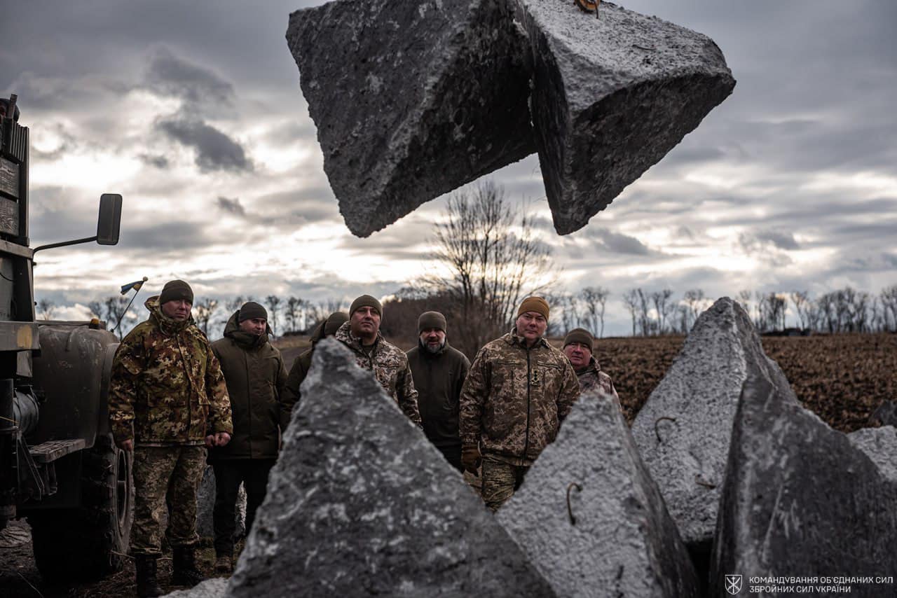 "У Північної операційної зони на очах виростають "зуби дракона". Це тетраедри – протитанкові бетонні загороджувальні елементи, які входять в систему оборони взводних опорних пунктів. Їх встановлення свідчить, що спорудження ВОПів добігає кінця", - йдеться в повідомленні.