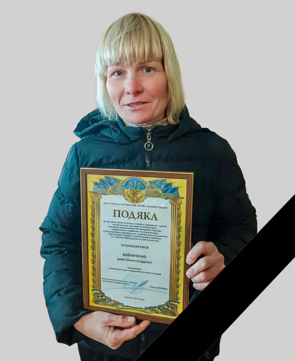 В Херсонській області окупанти вбили ще одну волонтерку - Ірину Байраченко, яка потрапила під обстріл рашистів і отримала тяжкі травми, від яких невдовзі померла в лікарні.