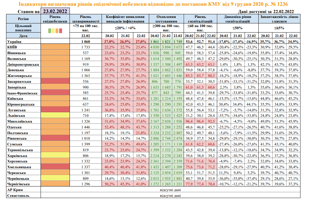 Так, станом на 23 лютого у зоні з найслабшими карантинними обмеженнями залишаються тепер три області: Львівська, Харківська, Чернівецька. У МОЗ зауважують, що ситуація із поширенням хвороби там повністю контрольована.