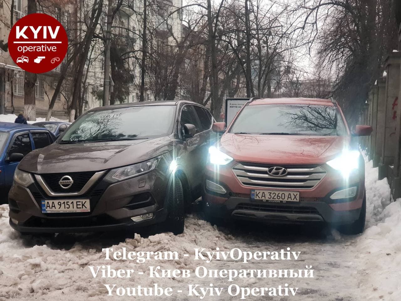 Водій автомобіля Hyundai з держномерами KA3260AX, який рухався тротуаром біля будинку по вулиці Богомольці, 2, зачепив припарковану автівку Nissan з державним номером AA9151EK.