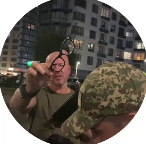 На другому відео можна побачити, як у працівника НБУ розбита брова, а на іншому - він показує зламані окуляри, вимагаючи компенсації. Разом з цим білоруський доброволець говорить: "Те, що ти сидів об кермо бив (обличчя - "Апостроф") – ми бачили".