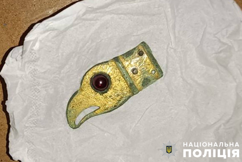 Запобігти продажу археологічних знахідок вдалось за допомогою фахівців провідного історичного музею країни, які на сайті для колекціонерів відслідкували оголошення про продаж рідкісних артефактів - фрагмент браслету та золочене закінчення ременю у вигляді голови хижого птаха із вставкою з гранату.