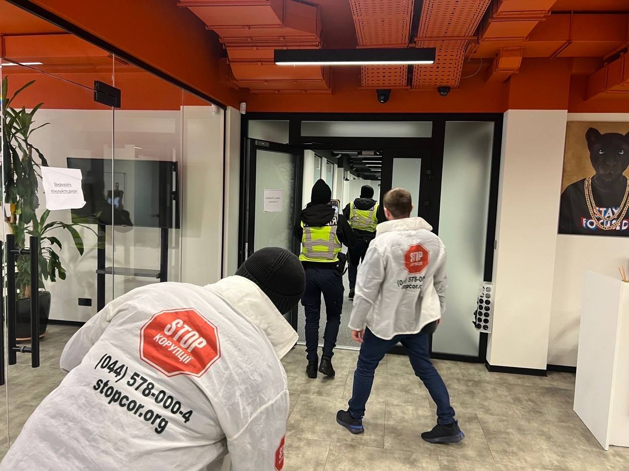 Після цього багато людей, що ймовірно були працівниками call-центру, почали тікати з будівлі. Журналісти викликали поліцію. Поки екіпаж їхав на виклик, працівники "офісу" встигли винести з приміщення техніку і документи.