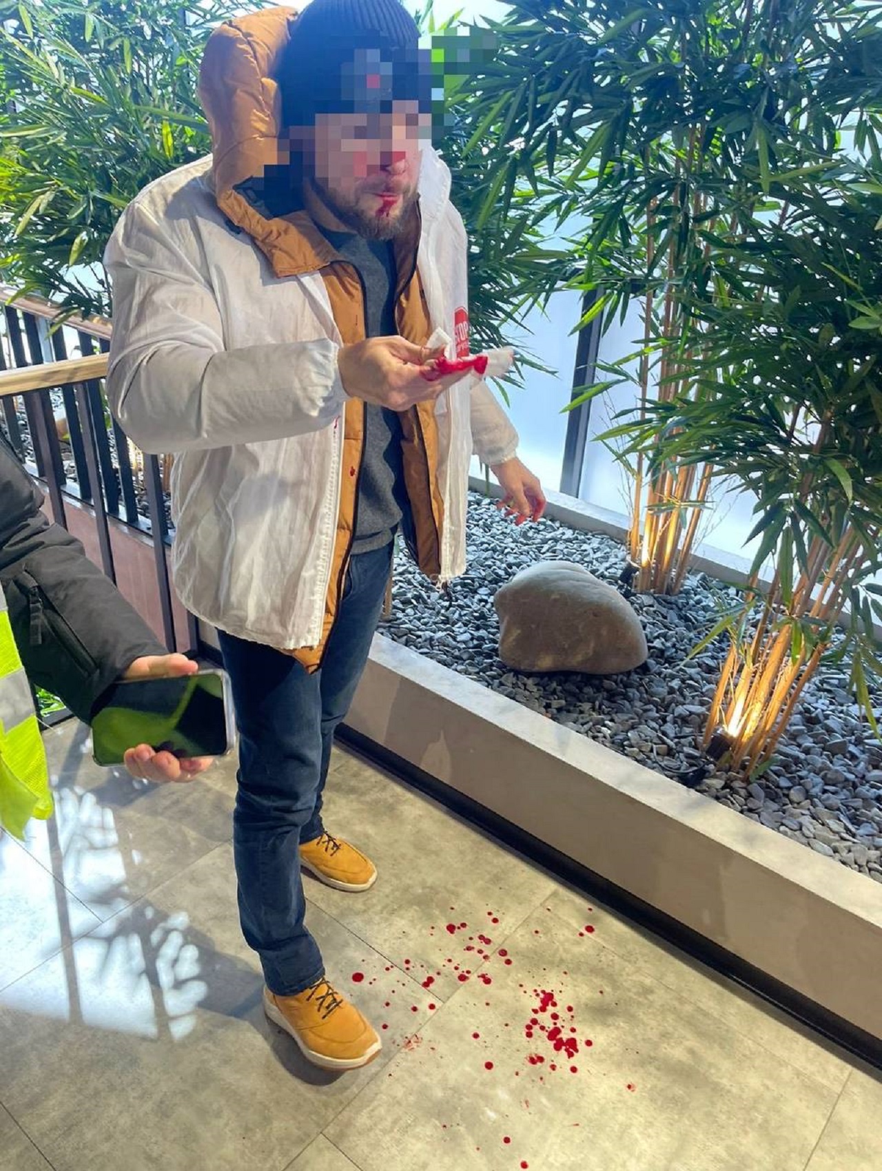 Вже за присутності поліцейських три невідомі особи напали на представників "СтопКору". Із рук одного з журналістів намагались вирвати телефон, іншого вдарили в обличчя, розбивши ніс. Почалась бійка.