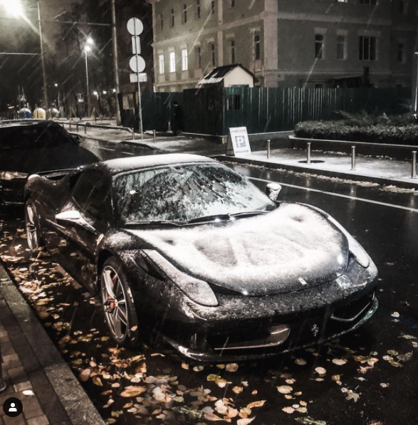 У вівторок, 17 листопада, коли Київ накрив перший сніг, на вулицях української столиці помітили розкішний суперкар Ferrari 458 Italia, запорошений снігом.