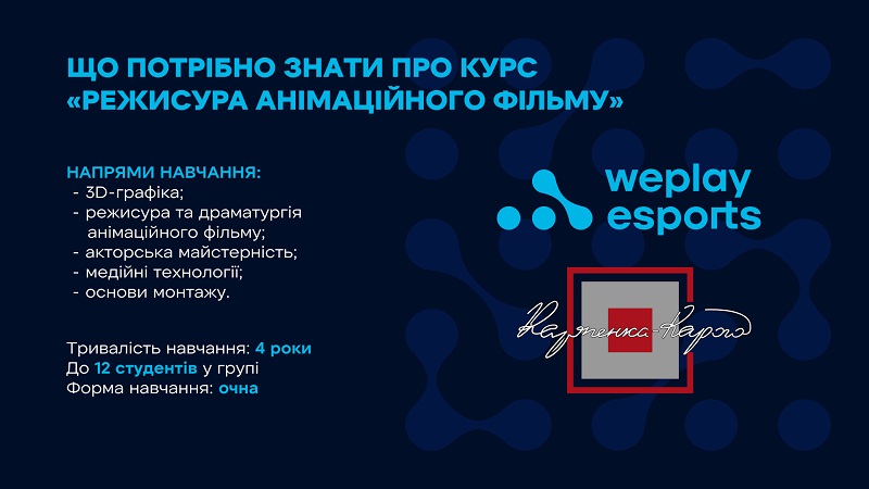 Про запуск курсу "Режисура анімаційного фільму" між WePlay Esports та Університетом підписано Меморандум. Умови вступу та відбору абітурієнтів оголосять додатково.