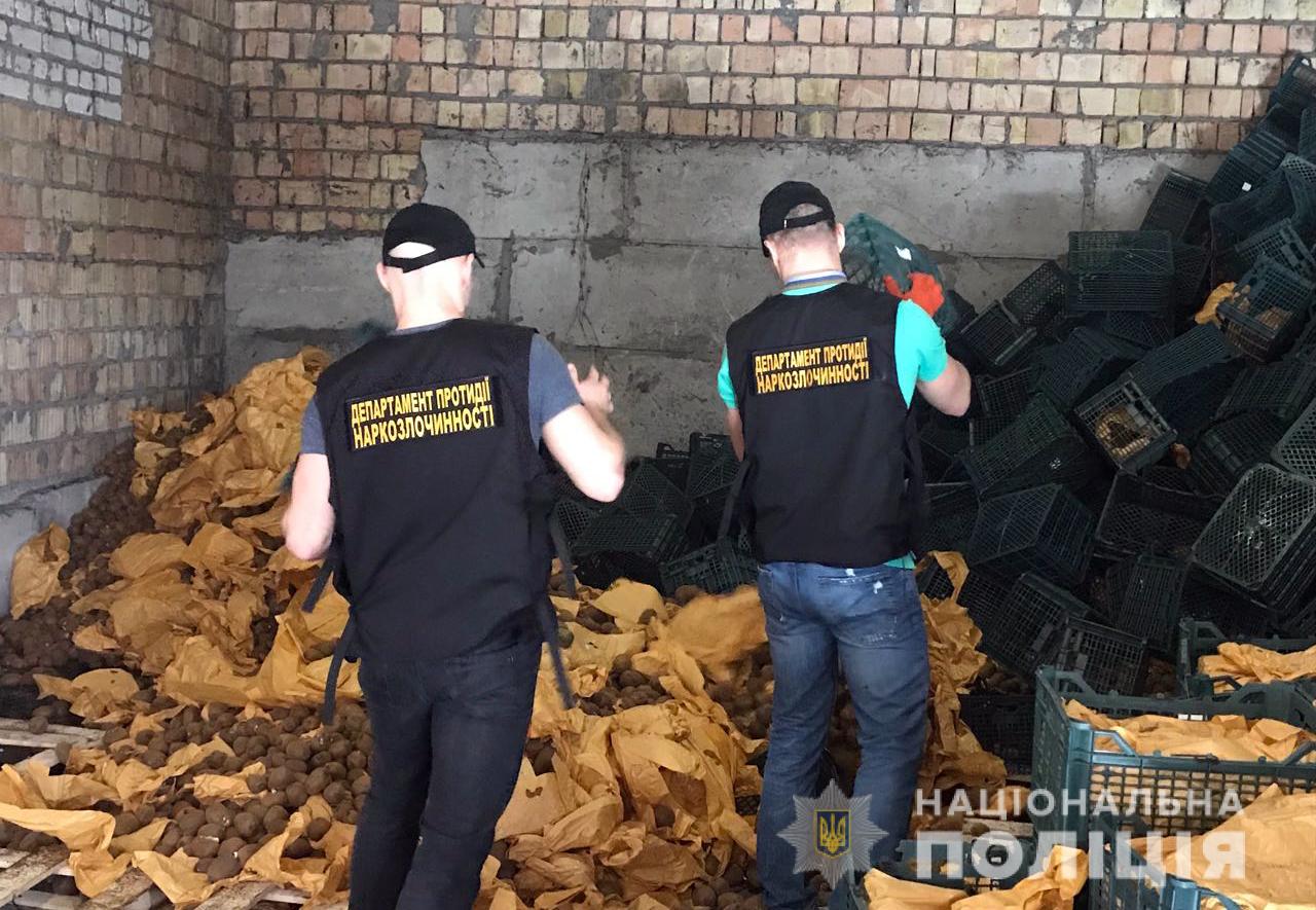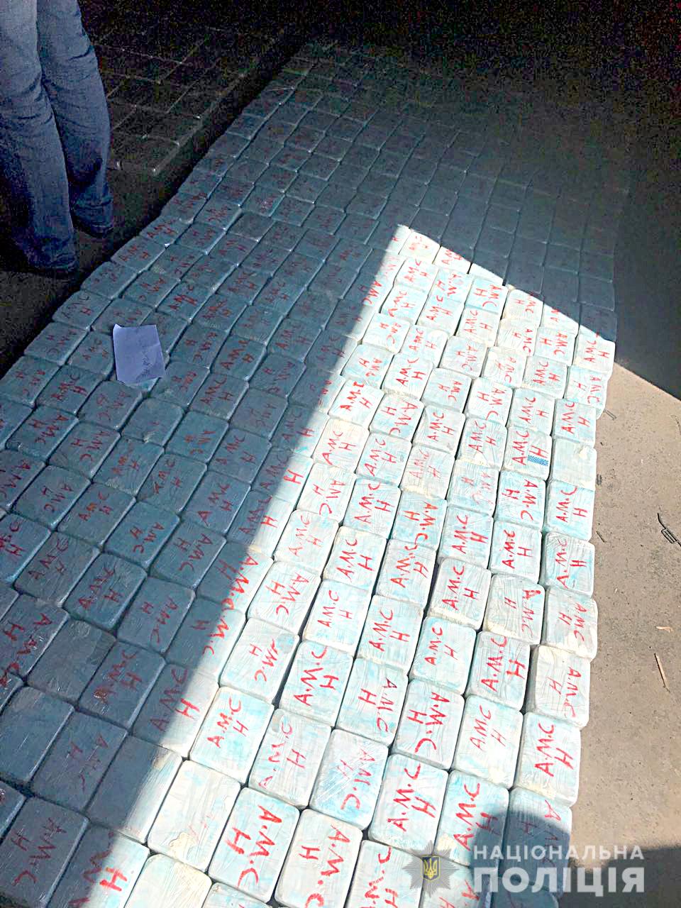 Як розповів начальник Департаменту протидії наркозлочинності Нацполіції Андрій Кіхтенко, в орендованому наркозлочинцями гаражному приміщенні поруч із сотнями кілограмів фруктів поліцейські виявили 500 кілограмів героїну. Відтак загальна вага вилученої партії склала
