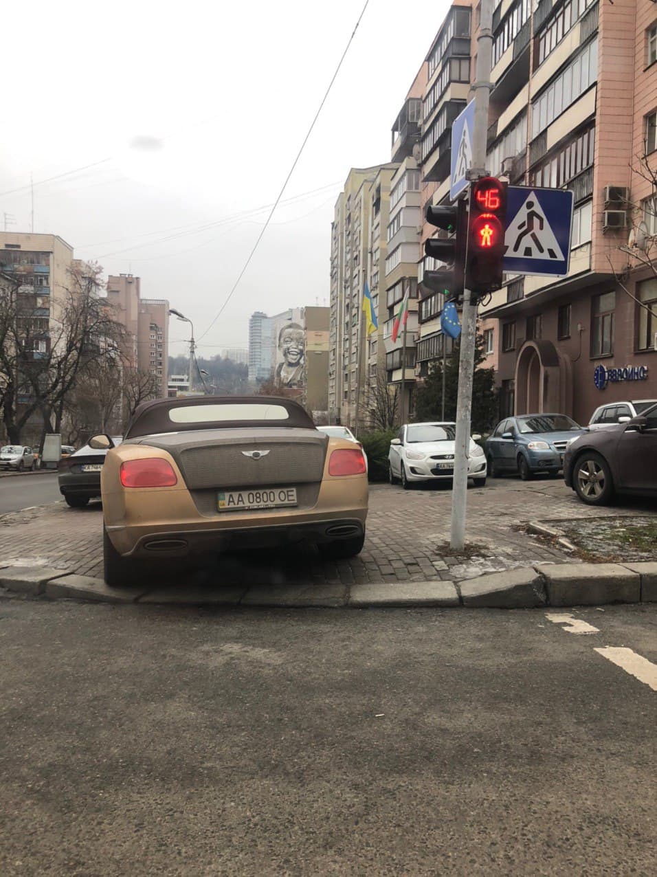 На фотографії видно, що власник залишив свій Chrysler прямо під світлофором для пішоходів, чим створив труднощі для їх пересування.