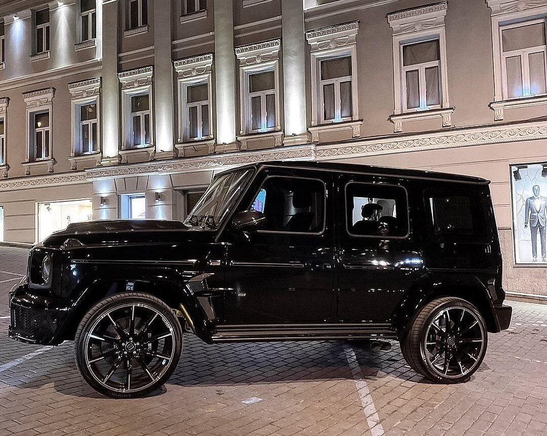 Тюнінгований Брабус Гелендваген легко впізнати. Його особливими прикметами є капот з повітрозабірником, обвіс і 23-дюймові диски з низькопрофільною гумою.