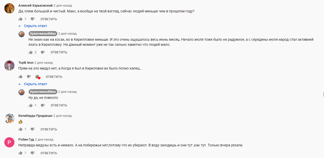 Користувачі в обговоренні відео зазначили, що на інших пляжах в Кирилівці медузи є - немає тільки там, де їх прибирають.