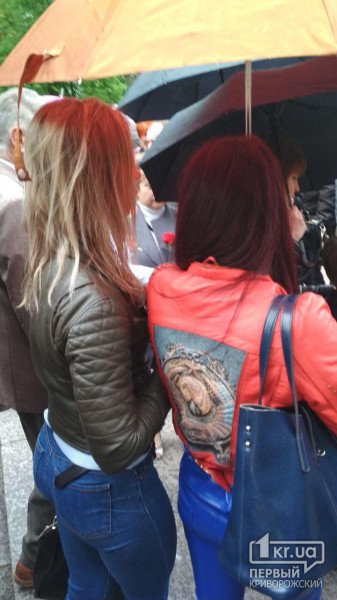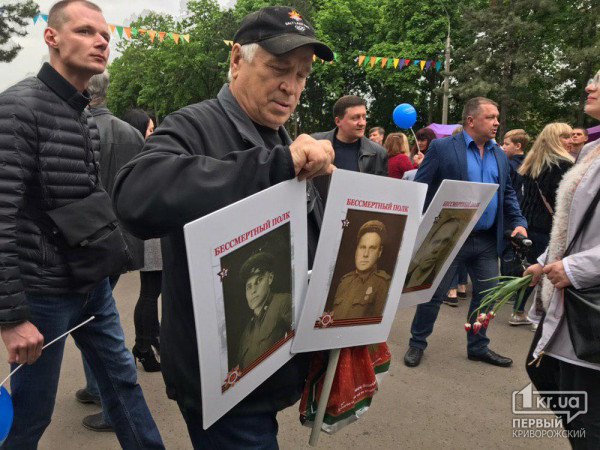 9 травня в парку "Шахтарський" в Кривому Розі чоловік приніс на свято портрети трьох ветеранів із георгіївськими стрічками.