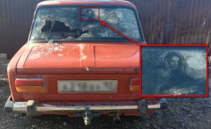В окупованому Росією Криму, в одному з дворів міста Севастополь, був виявлений автомобіль "Жигулі" з малюнком на задньому склі, які нагадують обриси жіночої голови від плечей.