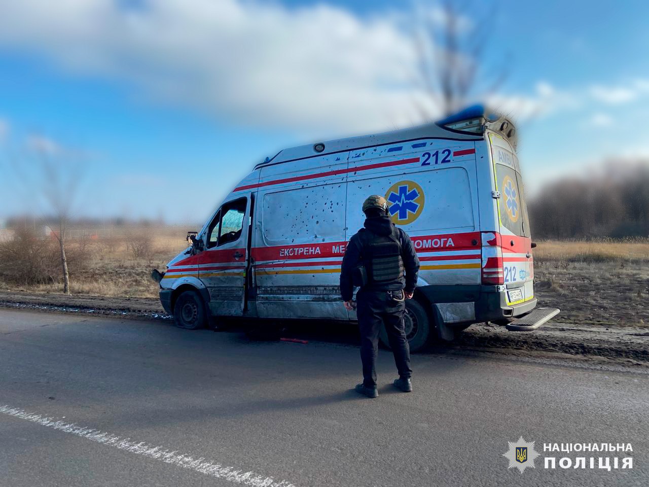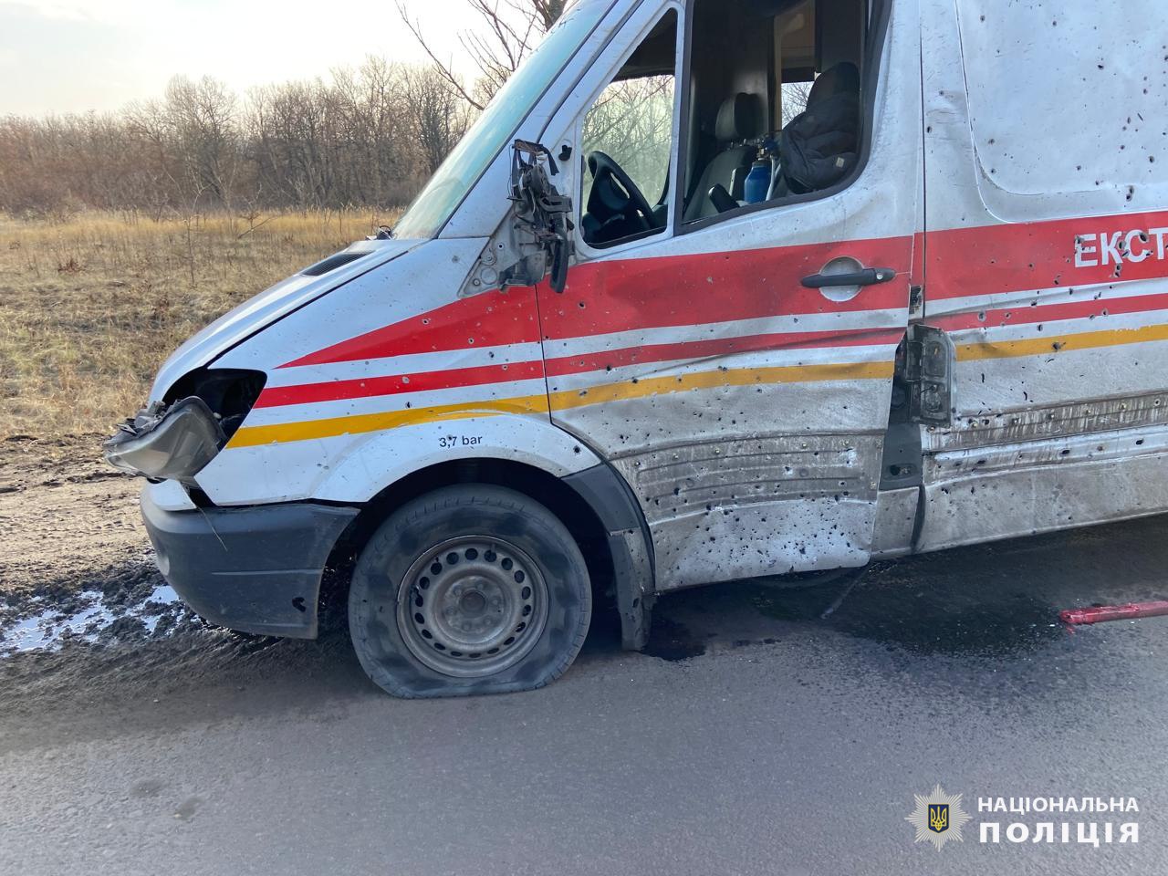 Поліцейські розповідають, що обстріл стався о 12:20. Російський БпЛА літакового типу "Молнія" поцілив в автомобіль швидкої медичної допомоги.