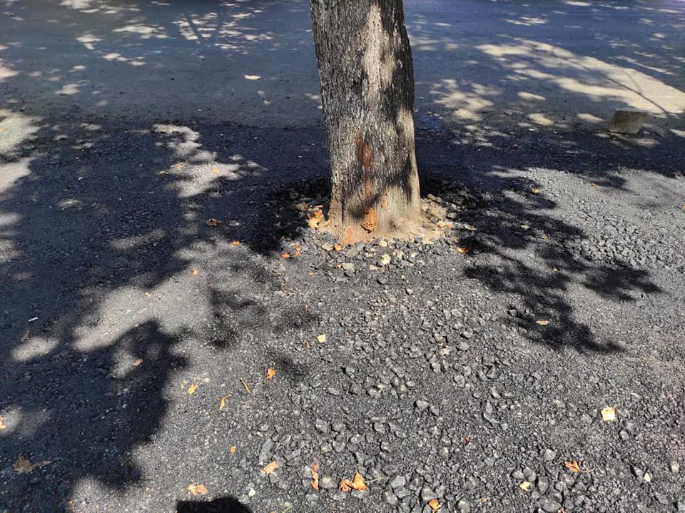 Федір Левченко розповів, якої помилки припустилися працівники дорожньої служби. Дорожникам необхідно було встановити спеціальні пристовбурні обмежувачі/рамки для захисту дерев і попадання води в кореневу систему дерев.