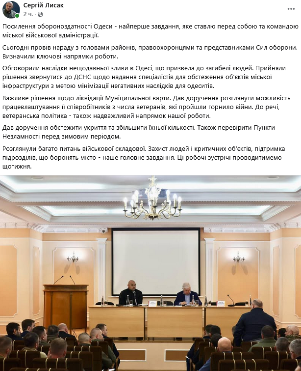 "Посилення обороноздатності Одеси – найперше завдання, яке ставлю перед собою та командою міської військової адміністрації", – повідомив він.