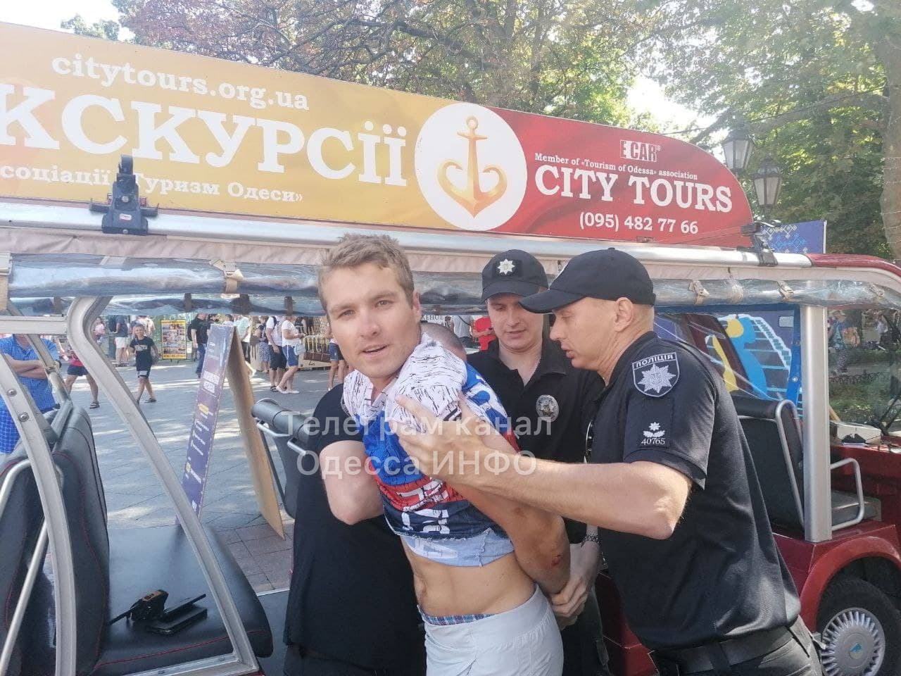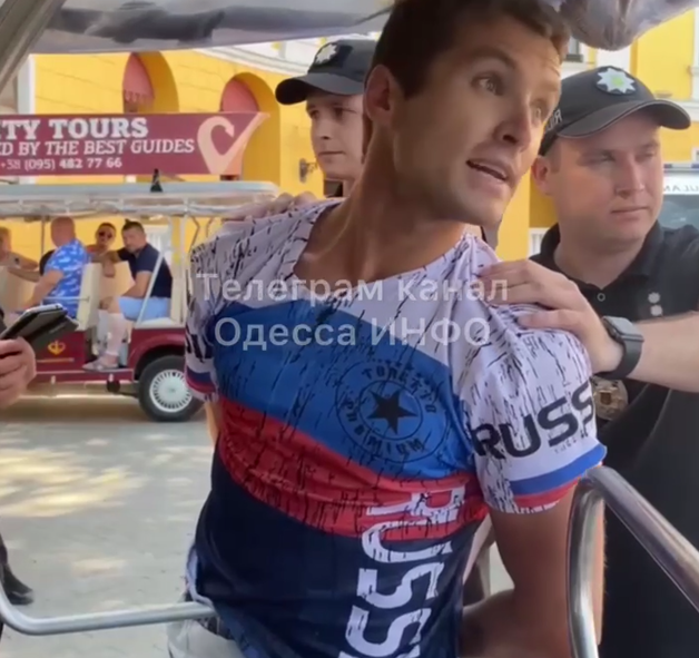 В Одесі під час фестивалю вишиванки поліція затримала провокатора з прапором Росії на футболці. Він ображав українців і стверджував, що є громадянином США.