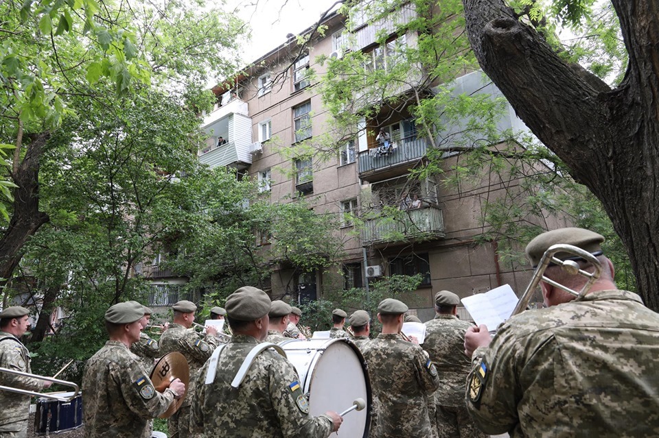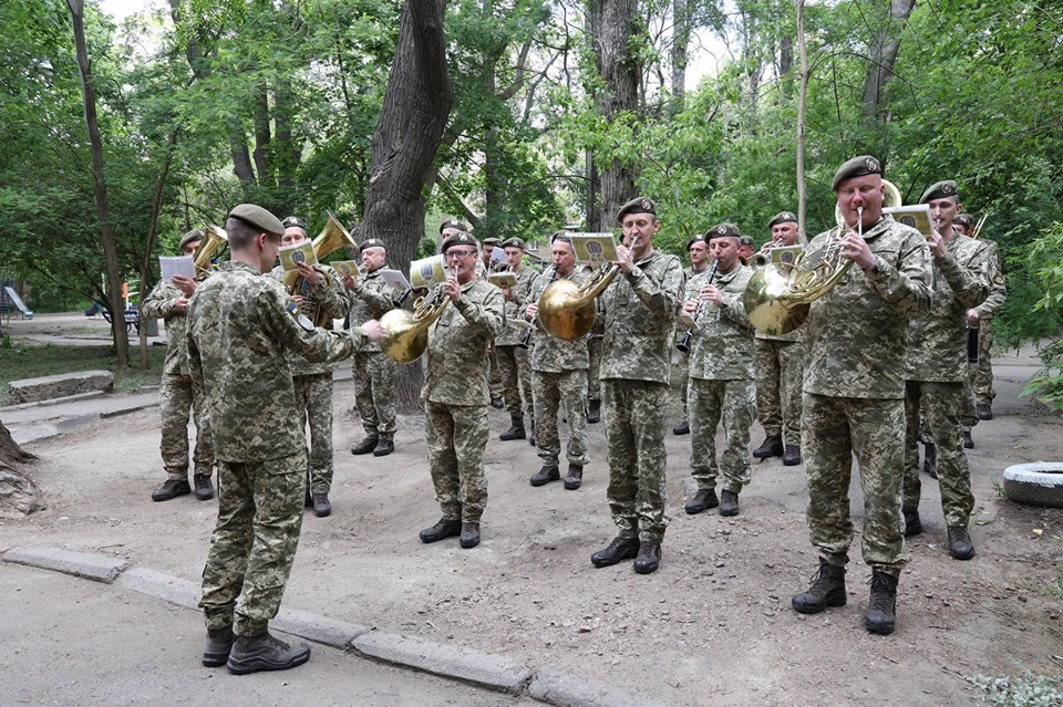 Курсанти та офіцери із оркестром урочисто вишикувались під його балконом та віддали честь захиснику України.