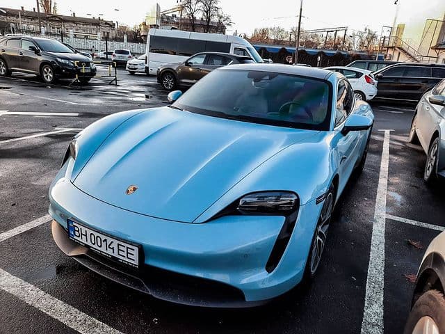 На одній з парковок в місті Одесі було помічено спорткар Porsche taycan 4s, який розганяється до 100 км/год за 4 секунди, незвичайного блакитного кольору.