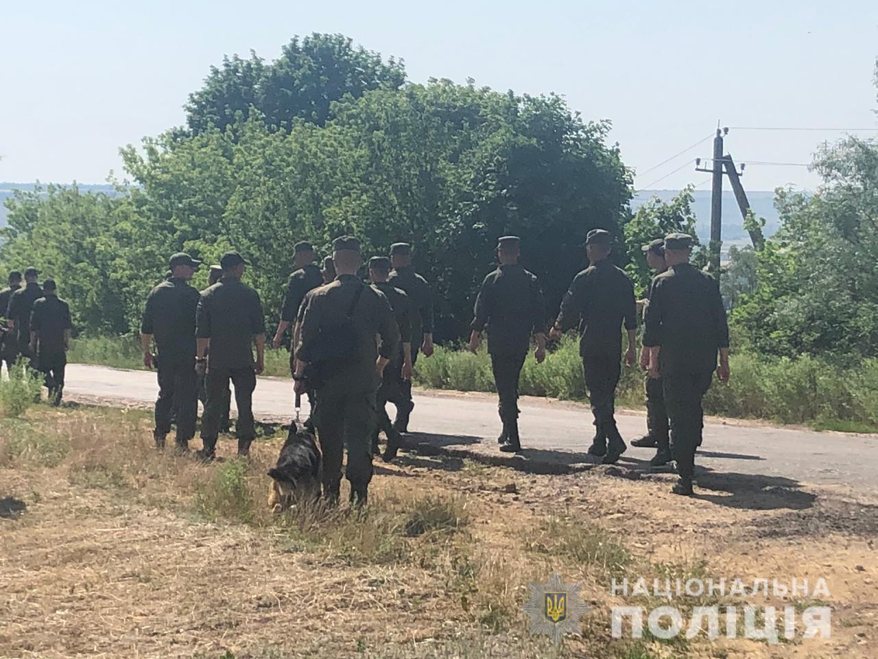 "У рамках розпочатого за п. 2 ч. 2 ст. 115 КК кримінального провадження проводяться обшуки і обходи. Військовослужбовці Нацгвардії і волонтери прочісують поля, посадки, яри і занедбані будівлі. На в'їзді в райцентр працюють пости поліції", - відзначили в ГУНП.
