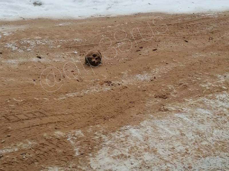 Проїжджу частину посипали від ожеледиці. Однак потім очевидці помітили, що разом з піском на дорозі розкидані людські кістки. Також там лежали черепа.