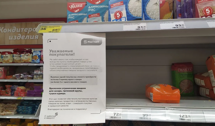 Нагадаємо, що мережа гіпермаркетів "Ашан" ввела обмеження на продаж деяких соціально значущих товарів в одні руки. Це стосується також магазинів "Атак", які управляються Auchan Retail Росія.