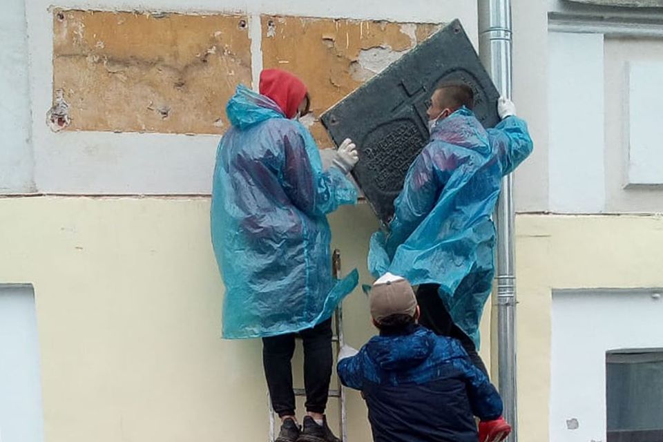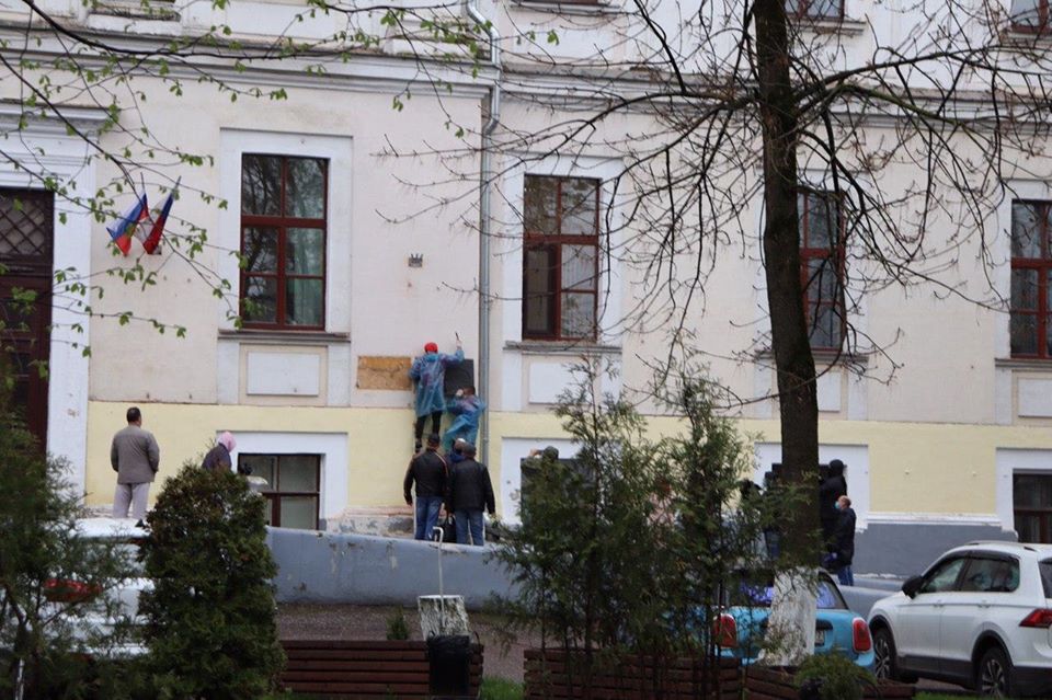 Дві таблички, російську та польську, зняли з фасаду будівлі відповідно до рішення прокуратури Центрального району міста.