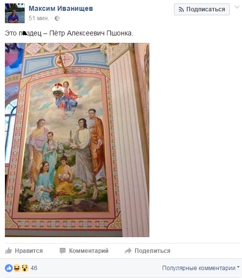 "Бл*дь, коли ж закінчиться ця "ера золотого батона"?", "Тю. у нас Ківалов побудував церкву імені своєї дочки )) і там ікони з ликами його і його родини", - коментують публікацію користувачі соцмережі.