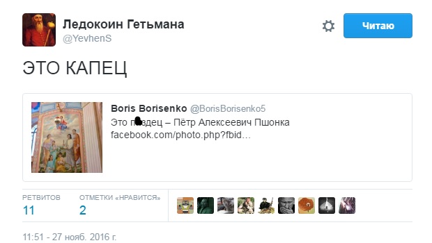 Також користувачі Twitter в коментарях звернули увагу, що поруч з людиною на фресці, який нагадує Порошенка, зображений хлопець, який, на думку користувачів, схожий на сина президента України.