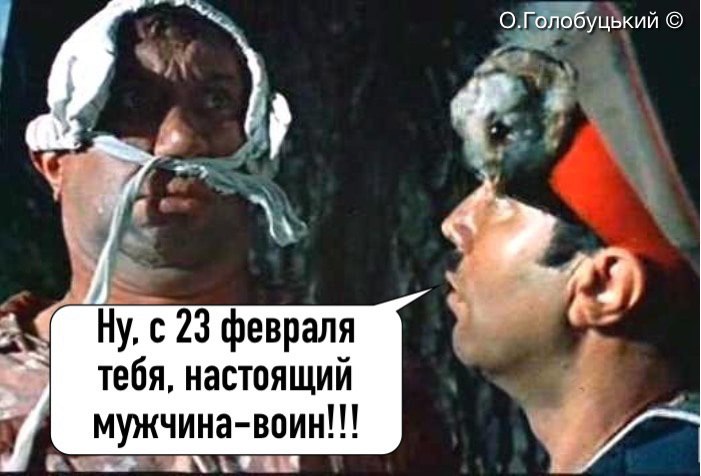 "Ну з 23 лютого тебе, справжній мужчина-воїн!!!" - йдеться у підпису до карикатури.