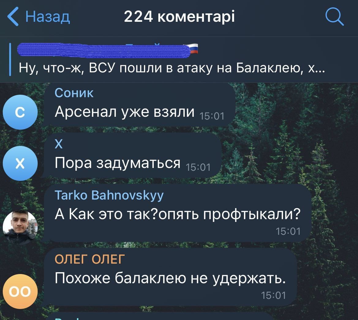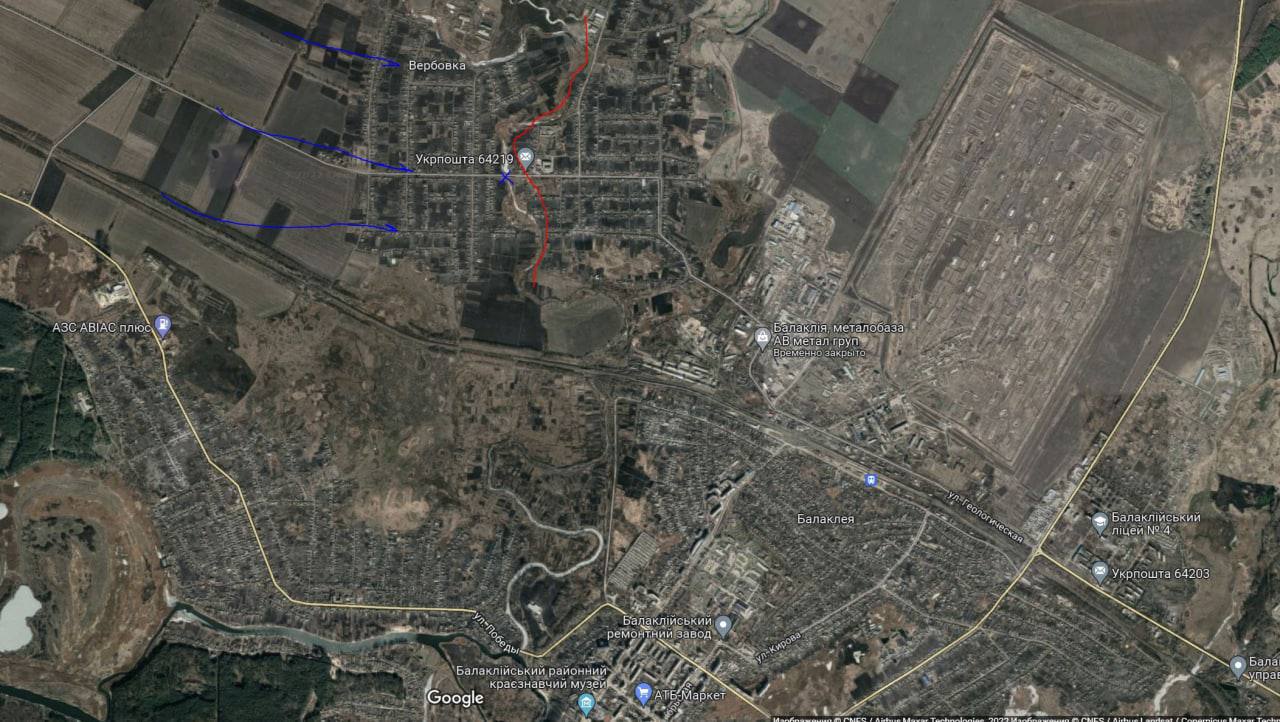 Є непідтверджена інформація про те, що українські захисники увійшли у село Вербівка на північ від Балаклії. Там теж тривають запеклі бої.