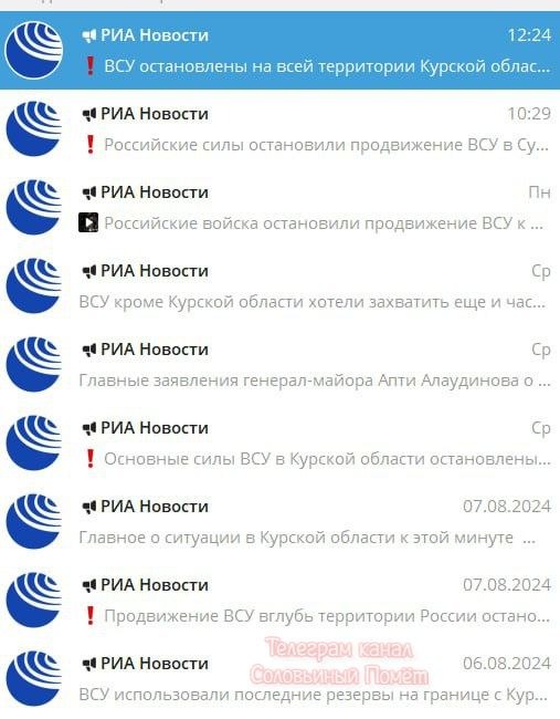 Починаючи з 6 серпня, агентство щодня "інформувало", поки ЗСУ насправді просувалися Курською областю та займали нові й нові населені пункти, про те, що "ЗСУ використали останні резерви", "просування ЗСУ зупинене", "російські війська зупинили ЗСУ" і таке подібне.