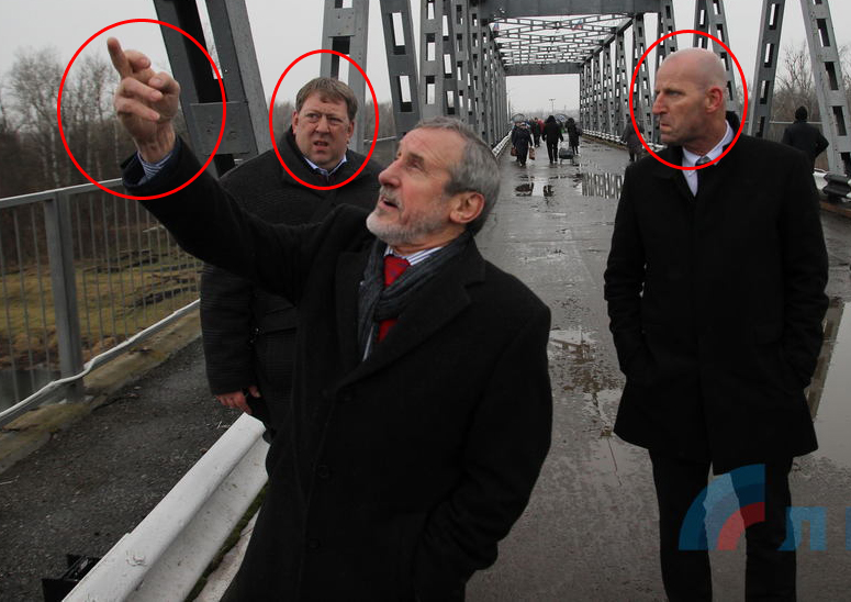 "Німецькі нацики на мосту в Станиці Луганській. Ну і Росія, звичайно ж, куди без неї", - написав він.
