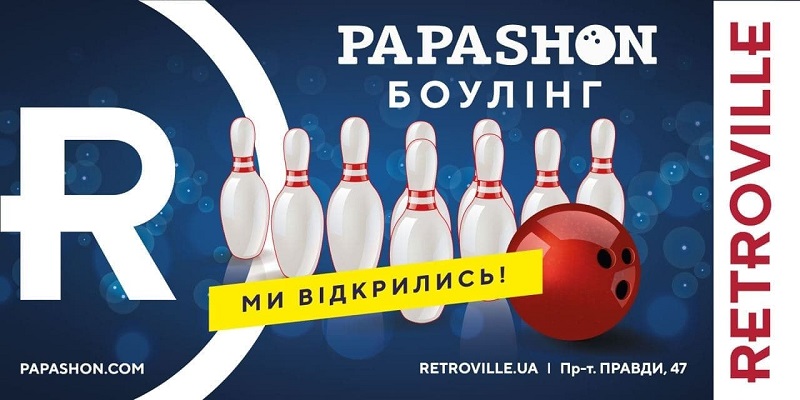 У ТРЦ Retroville відкрився Papashon Bowling і там є все для незабутнього відпочинку. Це розважальний комплекс, де можна гарно відпочити на вечірці чи зіграти з друзями у боулінг або більярд.