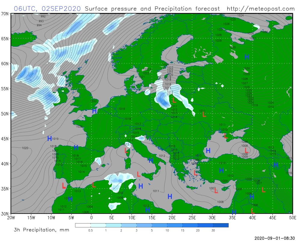 Дощів практично не очікується, лише на Волині, в Рівненській області та поблизу Карпат місцями опади.