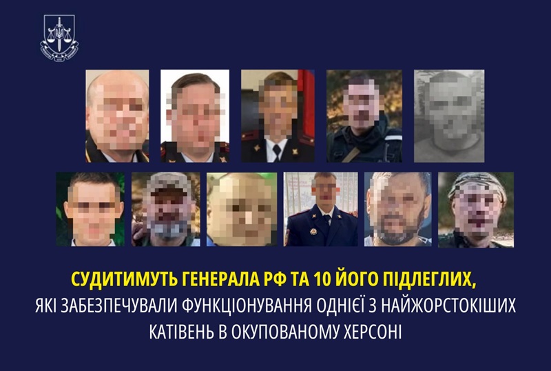 В Україні до суду скеровано обвинувальний акт щодо 11 співробітників МВС Росії, які у 2022 році організували у Херсоні катівню, ув"язнивши щонайменше 183 цивільних осіб.