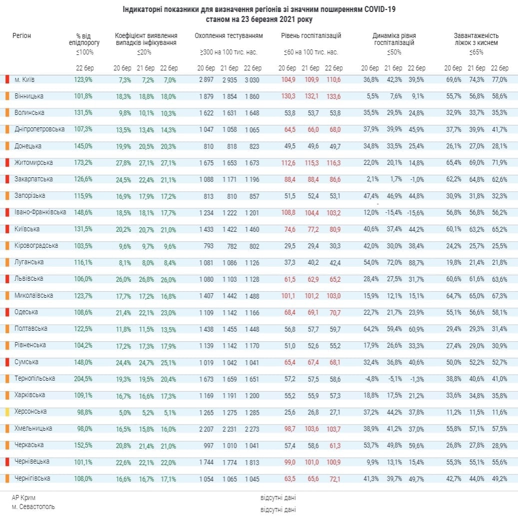 Решта областей залишилися в "жовтій" зоні карантину.