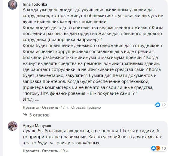 "Непогано, але більшої уваги вимагають лікарні, школи та дитсадки", "Краще б лікарні так робили, а не в'язниці. Школи та садочки", "Нам би гуртожитки такі студентам робити. Та й лікарні такі мати хотілося б", - так оцінили нову ініціативу у мережі.
