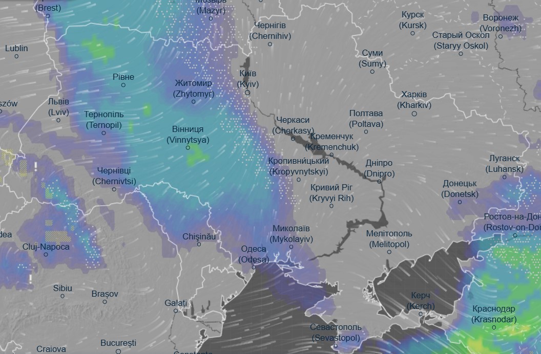 Ввечері сніг буде йти на Волині, Житомирщині, Вінничині, Закарпатті, Прикарпатті, а також на півдні та південному сході країни.