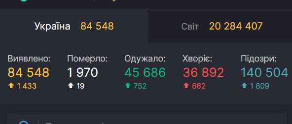 Станом на 12 серпня в Україні зареєстровано 1 433 нових випадки захворювання на коронавірус.