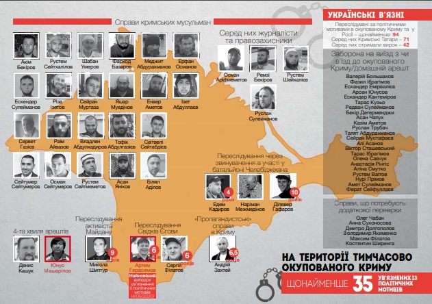 На території тимчасово окупованого Криму утримуються не менше 35 ув'язнених з політичних мотивів.