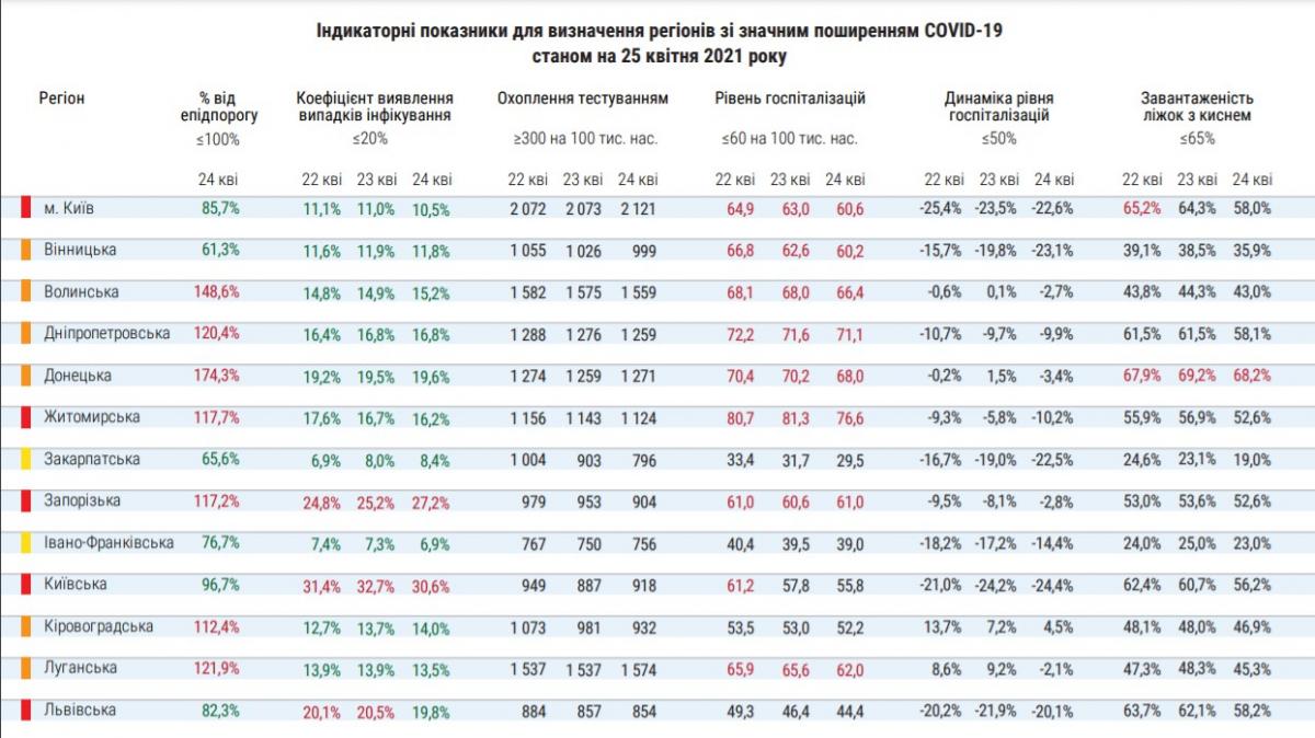 Жоден з українських регіонів поки не увійшов в "зелену" зону.