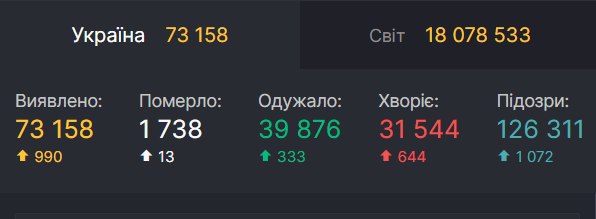Станом на ранок 3 серпня в Україні зафіксували 990 нових випадків коронавірусу.