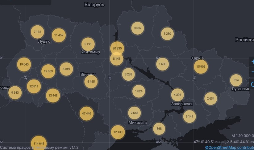 Найбільше заражених в Києві (20 335). Далі йде Львівська область (19 045) і Харківська (15 908). Також багато хворих і в Чернівецькій, Тернопільській, Івано-Франківській, Одеській та Рівненській областях.