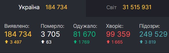 Всього за час пандемії в країні заразилися 184 734 особи. Одужали за весь час 81 670 людей. Але також померли від коронавірусу 3 705 осіб.