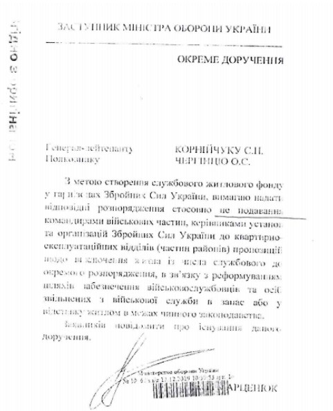 Зазначено, що доручення було видано в рамках реформи шляхів забезпечення військовослужбовців житлом.