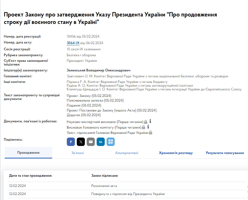 Як відомо, 6 лютого за відповідне рішення проголосували депутати Верховної Ради. Того ж дня законопроект підписав голова Верховної Ради Руслан Стефанчук.